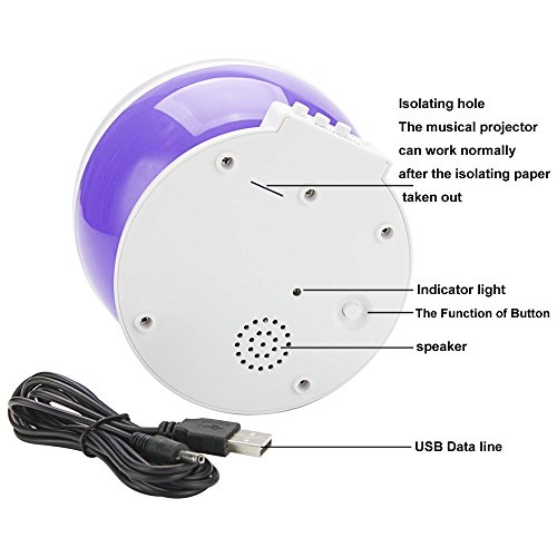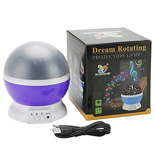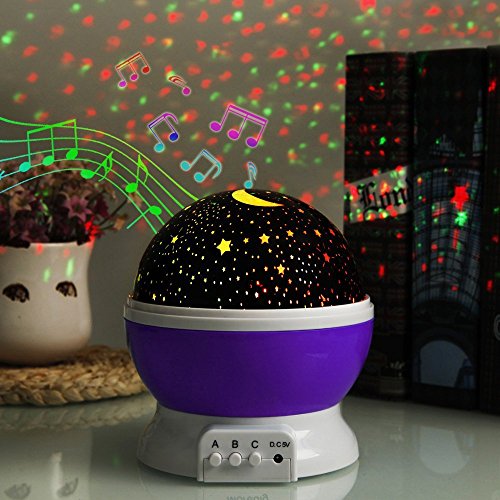 2017 Newest Version: 12 soft music with rotating 8 Multicolor lights to create a romantic sky at night.The higher power which make The Star and Moon more bright and beautiful than the old version.The rechargeable lithium battery can replace 4*AAA batteries with 6.5ft long USB cable.