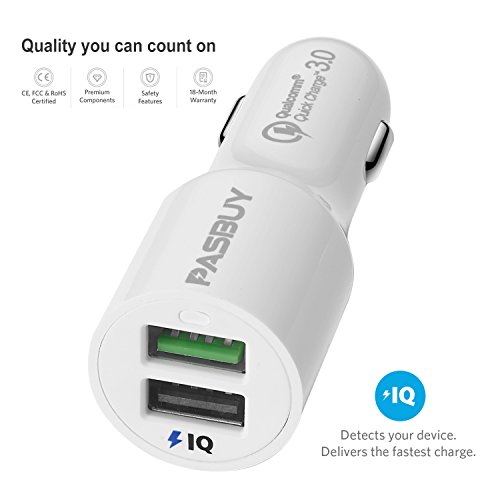 -. Title : PASBUY 4.8A 31.5W QC3.0 Dual USB Fast Car Charger for iPhone iPad, Samsung Galaxy, Note, HTC, Motorola, Nokia Etc