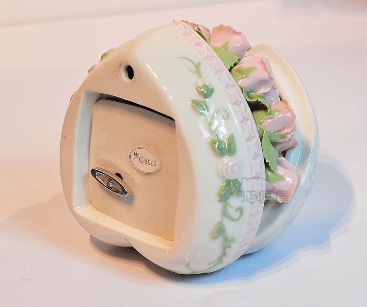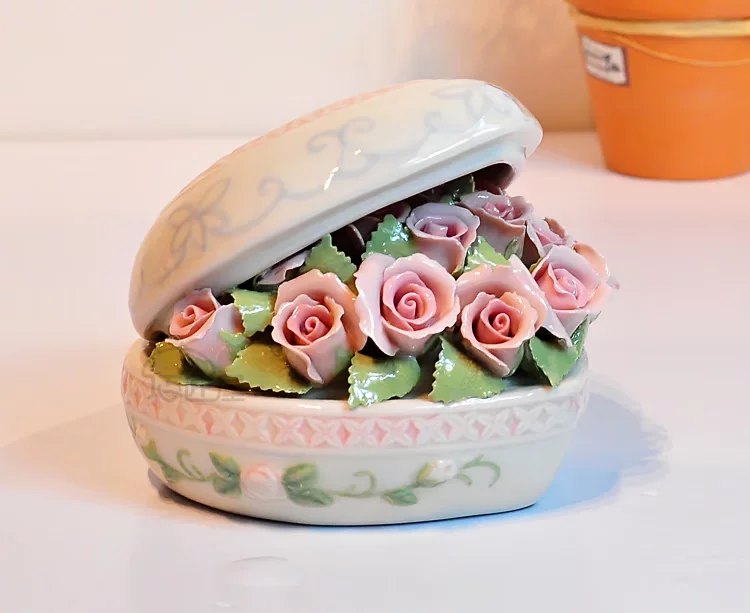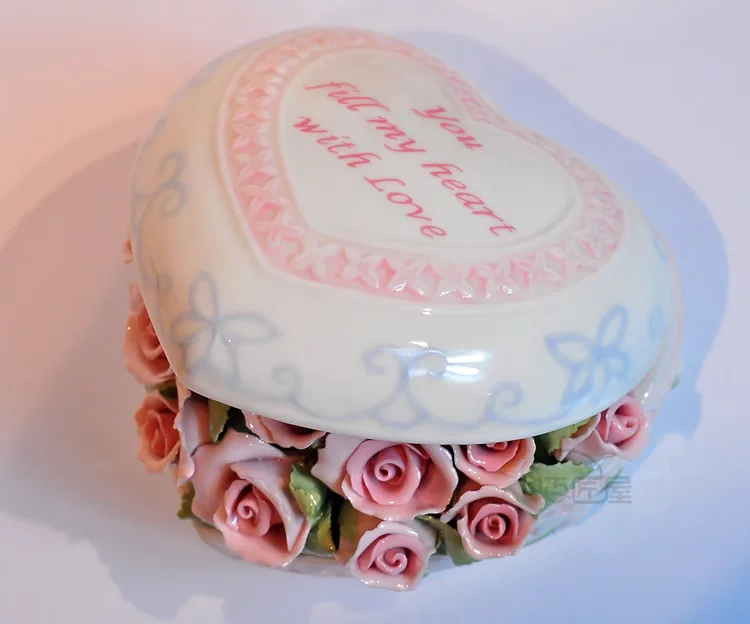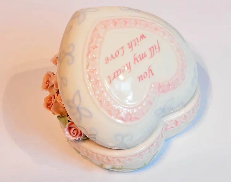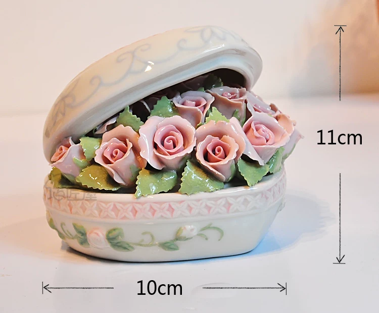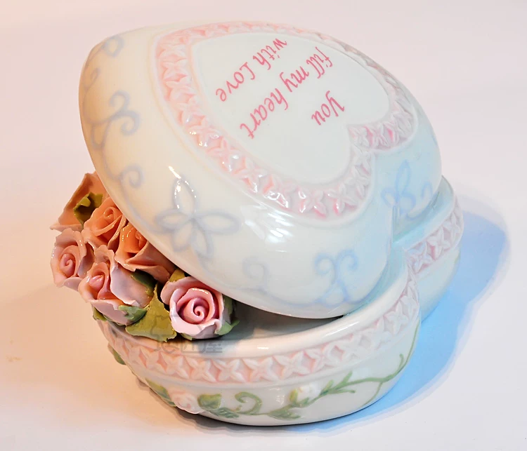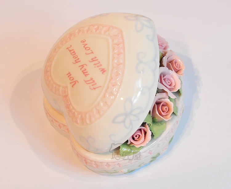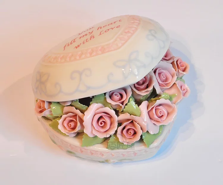 Fine ceramics Heart Rose Music Box upscale compact clay underglaze built-Japan sankyo movement pure sound
