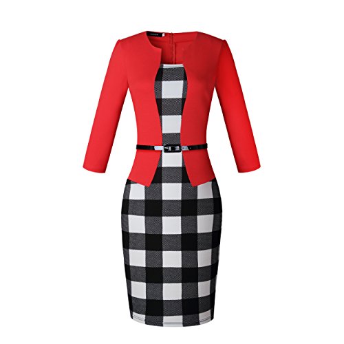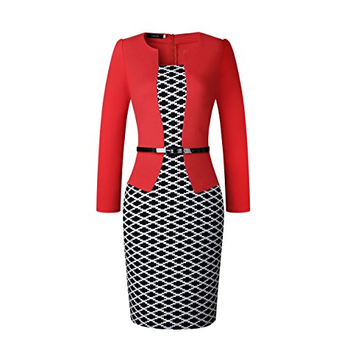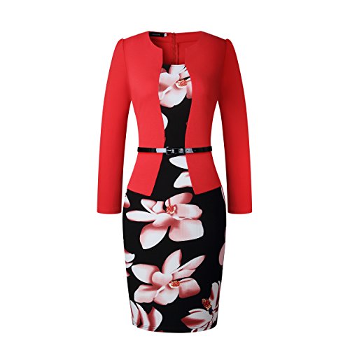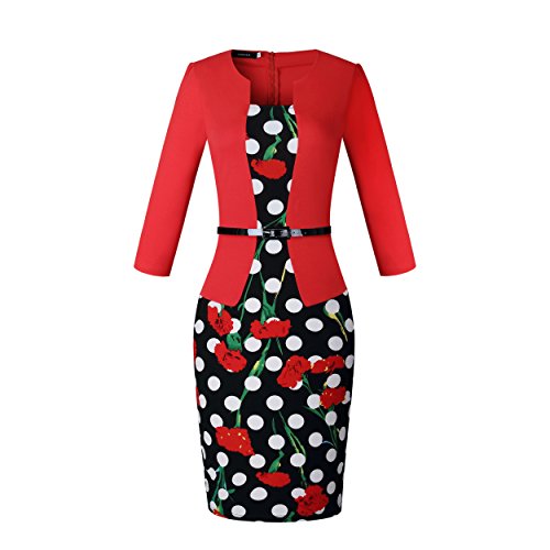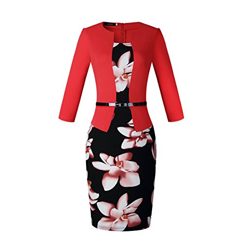 Version 1:($15.19-$17.99)Material:100%Polyester,Version 2($19.99-$20.99) Material:Pure Color Jacket Part 100% Cotton,Floral Part 100% Polyester.1*One-piece Dress+1*Belt Included,Other Parts Not Included.Zipper Closure on Back,OL Style,Fake Two Piece Design Wear to Work Business Dress