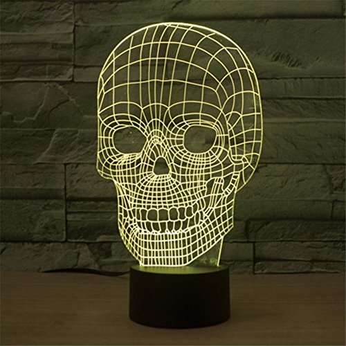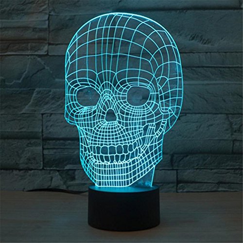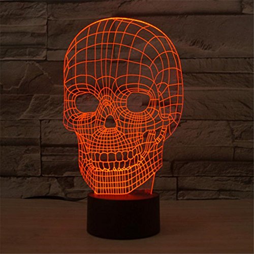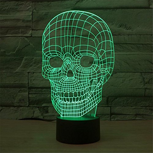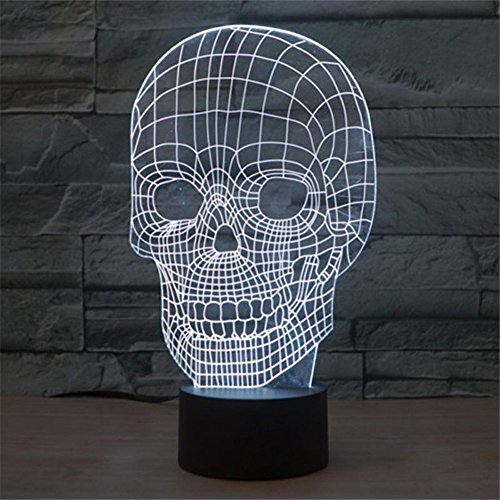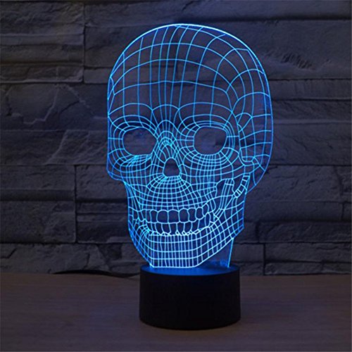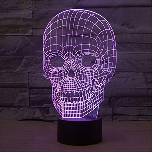 Skull 3D Night Light Touch Table Desk Lamps for Halloween Decor, Elstey 7 Color Changing Lights with Acrylic Flat & ABS Base & USB Charger