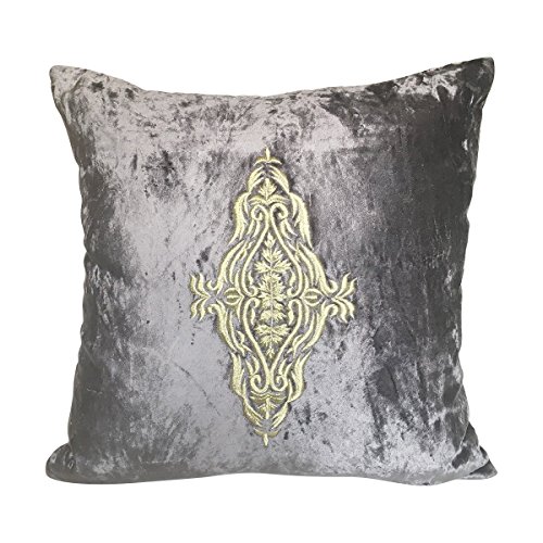 - PREMIUM QUALITY: The velvet fabric is top notch & stitching impaeccable. The damask pattern is embroidered with gold thread in the center of the pillow cover. Both the front & back of the pillow cover are made using same Gray colored fabric. The zipper at the back ensures easy removal & insertion of the filler.