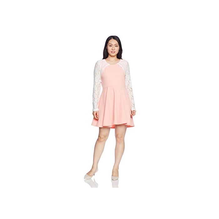 원본상품명: 長袖レ?ス切替フレアワンピ?ス DKブル? ピンク LL 3L 4L 5L 6L 大きいサイズ (LL, ピンク)