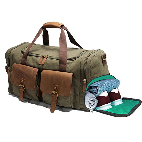 -. Title : Canvas Duffle Bag Oversized Genuine Leather Trim Weekend Bags for Men and Women Unisex