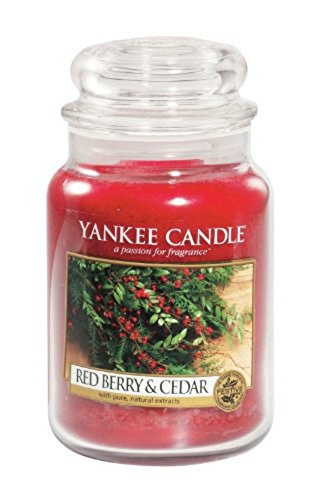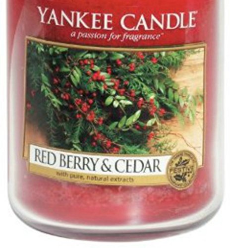 -. Binding : Kitchen -. Brand : Yankee Candle -. Color : Red -. EAN : 0609032640354 -. Feature : America's Best Loved Candle, Made In USA; Burn Time: 110 to 150 Hours / Wick: 100% natural fibers for the best and cleanest burn possible / Premium quality ingredients with natural essential oils create distinctive true-to-life scents / Lab-tested to ensure the approP.R.Iate strength and consistency. 100% recyclable and accepted by most recycling centers. / Lead-free, 100% natural fibers, and hand straightened to ensure it is centered for the best burn possible. -. IsAutographed : 0 -. Label : Yankee Candle Company -. Manufacturer : Yankee Candle Company -. MPN : B00E8GZBA6 -. PackageQuantity : 1 -. PartNumber : B00E8GZBA6 -. ProductGroup : Home -. ProductTypeName : HOME -. Publisher : Yankee Candle Company -. Size : Large 22oz -. Studio : Yankee Candle Company -. Title : Yankee Candle Red Berry & Cedar Large Jar Candle, Festive Scent -. UPC : 609032640354