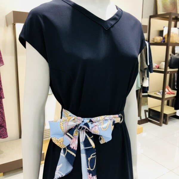 브이넥원피스입니다 포인트로 허리부분에 플라워패턴에 벨트가 있고 깔끔함과 여성스러움을 줍니다