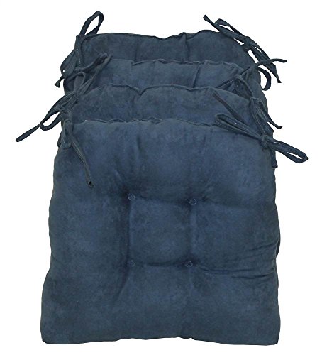 -. Feature : Fabric: Red Wine / Set of 4 / Includes fabric ties / Pictured in indigo / 4 in. thick tufted design