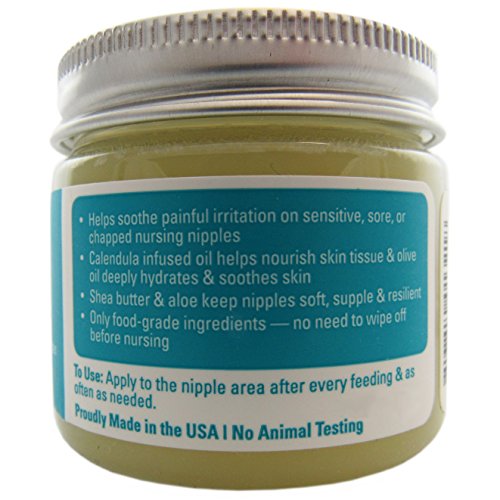 NIPPLE BALM: Helps relieve irritation and helps revitalize sensitive, sore or chapped nursing nipples. Olive oil deeply hydrates and soothes skin. Shea butter, tamanu and aloe keep nipples soft, supple and resilient. Only high quality ingredients safe for ingestion - no need to wipe off before nursing.