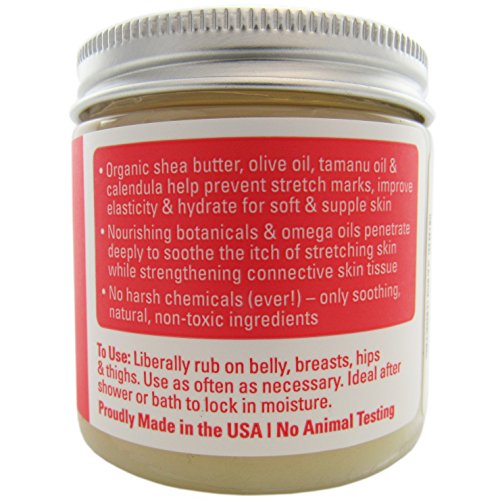 BELLY BALM cont: A unique blend of organic butters, botanicals, and antioxidants for belly and body health. Organic shea butter, olive oil, tamanu oil, and calendula help reduce the appearance of stretch marks, improve elasticity, and hydrate for soft and supple skin.