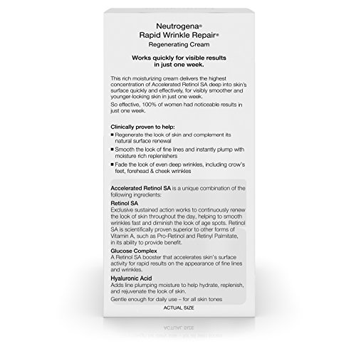 -. Binding : Health and Beauty -. Brand : Neutrogena -. EAN : 0070501110980 -. Feature : 1.7-ounce jar of anti-aging face cream / Reveals visibly smoother and younger-looking skin in one week / Clinically proven to help regenerate the look of skin and complement its natural surface renewal / Instantly plumps with moisture-rich replenishes / Fades the look of even deep wrinkles, including crow's feet, forehead, and cheek wrinkles -. Label : Johnson & Johnson Consumer Inc. -. Manufacturer : Johnson & Johnson Consumer Inc. -. NumberOfItems : 1 -. PackageQuantity : 1 -. ProductGroup : Beauty -. ProductTypeName : BEAUTY -. PublicationDate : 2016-07-01 -. Publisher : Johnson & Johnson Consumer Inc. -. ReleaseDate : 2016-06-28 -. Studio : Johnson & Johnson Consumer Inc. -. Title : Neutrogena Rapid Wrinkle Repair Face Cream, 1.7 Ounce -. UPC : 070501110980