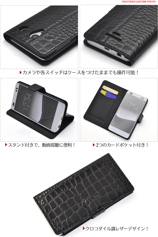 使いやすい手帳タイプ!DIGNO M KYL22用クロコダイルスタンドケースポーチ