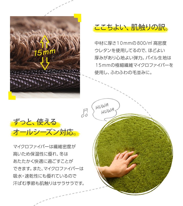 【商品について】ふわふわシャギーラグマットLサイズ(200×250cm)洗えるラグマット、オールシーズン対応|エノーテ■サイズ:(約)幅200x奥250cm (約)3.9kg■カラー:イエローベージュ ブラウン グリーン モカ■素材:【表地】ポリエステル100%【中材】ウレタンフォーム【裏材】不織布(滑りにくい加工付)■その他:完成品でのお届けです。(約)幅53x奥52x高28cm (約)4.9kg