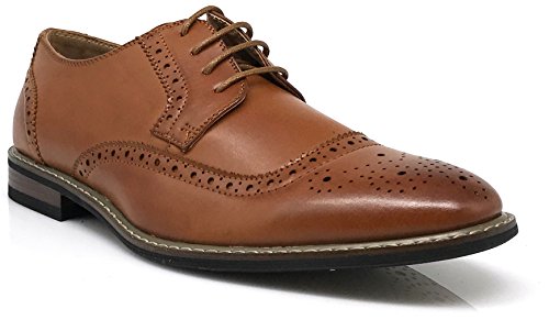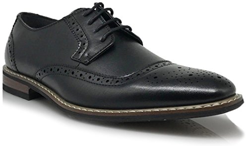 Wood05N Men's Classic Perforated Prince Lace Up Wingtip Cap Toe Oxford Dress Shoes
