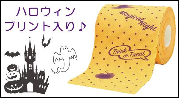 | 仕様 | 紙芯:有 エンボス加工:有 ミシン目:有 香料:無 カラー:オレンジ地に紫のハロウィンプリント ワンタッチホルダー対応 |