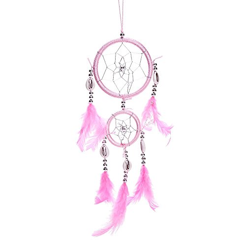 12" Traditional Pink Dream Catcher with Feathers Wall or Car Hanging Ornament 2 Circles