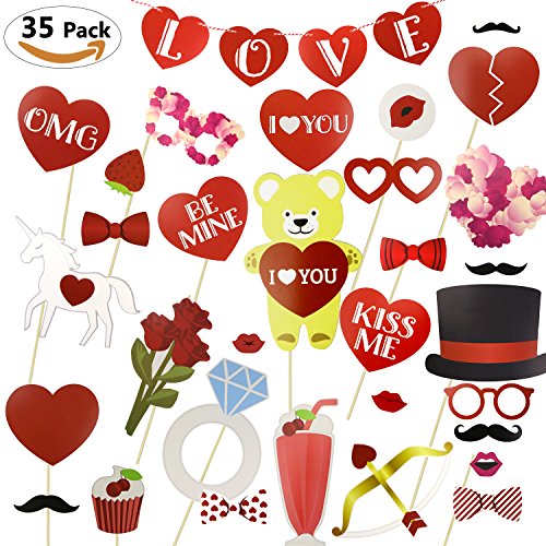 Philonext 35 Pcs Valentines Day Photo Booth Props Kit Wedding Photo BoothWedding Party Decorations Photo Booth Mustaches Lips Hearts Valentine’s Day Photo Booth Props Kit Valentines day, Wedding Decor
