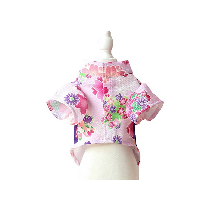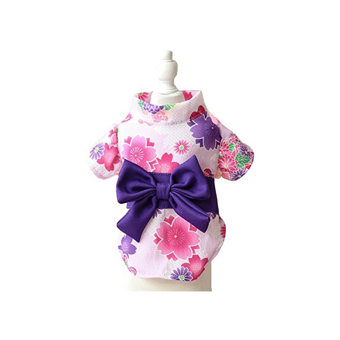 MaruPet(말 애완동물)견복 봄철에 알맞는 것 일본풍 유카타 벚꽃 나비매듭 국화 옷 양 다리 일본옷 소형견 축제 설날 축하 연말년 파라다이스 결혼식 기념 촬영 생일 화이트 S