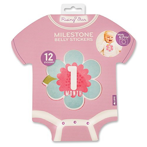 Rising Star Baby Girls Monthly Milestone Photo Prop Belly Stickers, 12 Sticker Gift Set, 0-12M