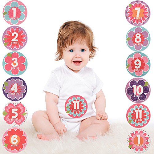 ★ Snap adorable photos of your little girl displaying each monthly milestone. Designed in gift set packaging, set features 12 milestone flower shaped belly stickers with each sticker featuring the new month of your little one.