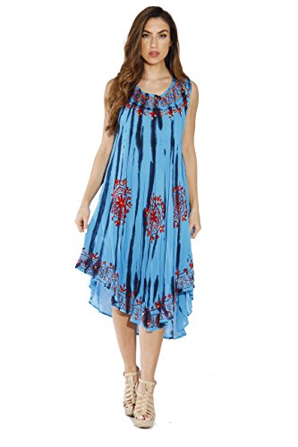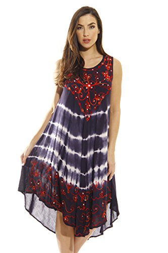 A SUMMER DRESS THAT BEAUTIFULLY DOES IT ALL All about Style Red, white and blue. Those are fast going to become your favorite colors thanks to these beautiful summer dresses! We've stylishly incorporated those iconic hues in our tie dye and acid wash dresses to create a striking look. The sundresses also come with intricate embroidery and sequin detailing to make your outfit truly pop. If you're looking for a dress that will turn heads at that beach party or one to get you a steady stream of compliments when walking about town, then this is it! Versatile Number This is the casual summer equivalent of a little black dress; you can wear it almost anywhere! Dress it up with wedges and a chic jacket for that lunch with friends, or dress it down with sandals and those sunglasses for a day out at the beach. And it works as a swimsuit cover up too! Thanks to the ultra-soft and lightweight 100% rayon fabric, this sundress dries up quickly and allows you to lounge by the pool in total style. Treat your closet to a touch of stylish versatility! Here's why you'll love this lovely cover up dress: - Comes in striking acid wash and tie dye designs. - Mix of color makes it a great dress to express your patriotic spirit. - High quality workmanship creates a beautiful finished piece. - Washes well without excessively shrinking or losing color. - Available in seven sizes from S-3X to fit most body shapes and sizes. Whether you're lounging by the pool or running some errands around town, count on this beach cover up to fill every moment with great style and comfort. Click 'Add to Cart' now!Feature