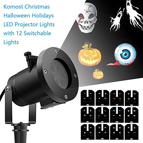 Christmas Halloween Projector Lights, Komost LED Projector Lights with 12 Switchable Patterns, Indoor and Outdoor for Holiday Lanscape Decoration
