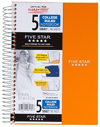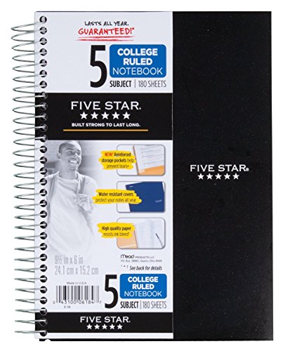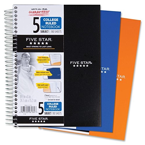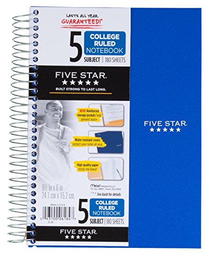 Five Star Spiral Notebook, College Ruled, 5 Subject, 6 x 9.5 Inches, 180 Sheets, Assorted Colors (06184)Pack Of 2