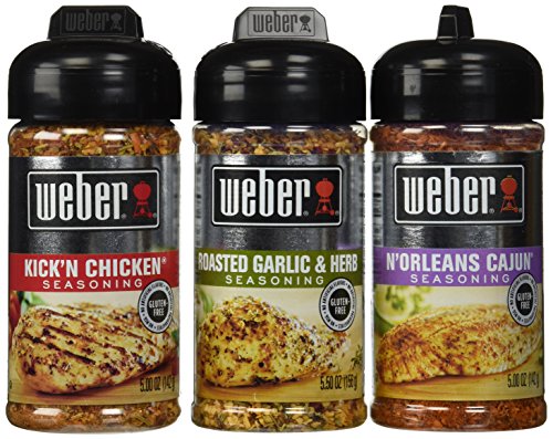 Weber All Natural Seasoning Blend 3 Flavor Variety Bundle: N'Orleans Cajun, Roasted Garlic Herb, and Kick'N Chicken, 5-5.5 Ounce