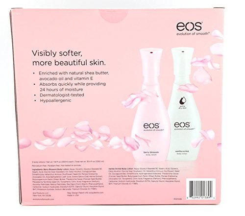For visibly softer, more beautiful skin! EOS Berry Blossom and Vanilla Orchid body lotion 3-pack.