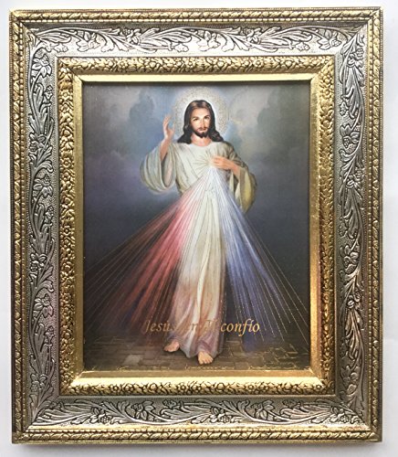 Divine Mercy Beautiful Portrait Print - 13 Inch Ornate Gold Finish Frame.Jesus Divine Mercy Frame