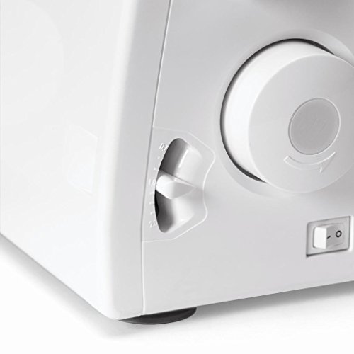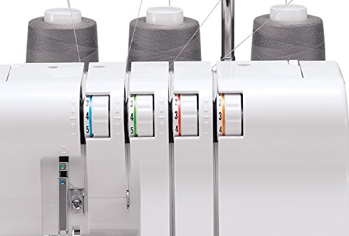 -. Feature : Two-needle sewing machine with speeds up to 1,300 stitches per minute / Differential feed for versatility; color-coded threading; easy tension adjustment / Adjustable stitch width (3.0 to 6.7 mm) and stitch length (2.0 to 4.0 mm) / Easy conversion to free-arm sewing; built-in accessory storage / Measures approximately 15 by 13 by 12-2/7 inches; 25-year limited warranty. 110 volt machine designed for United States and Canadian use only.