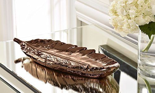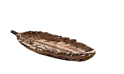 Giftcraft 15" Long Feather Shaped Decorative Tray in Copper Brown Ceramic