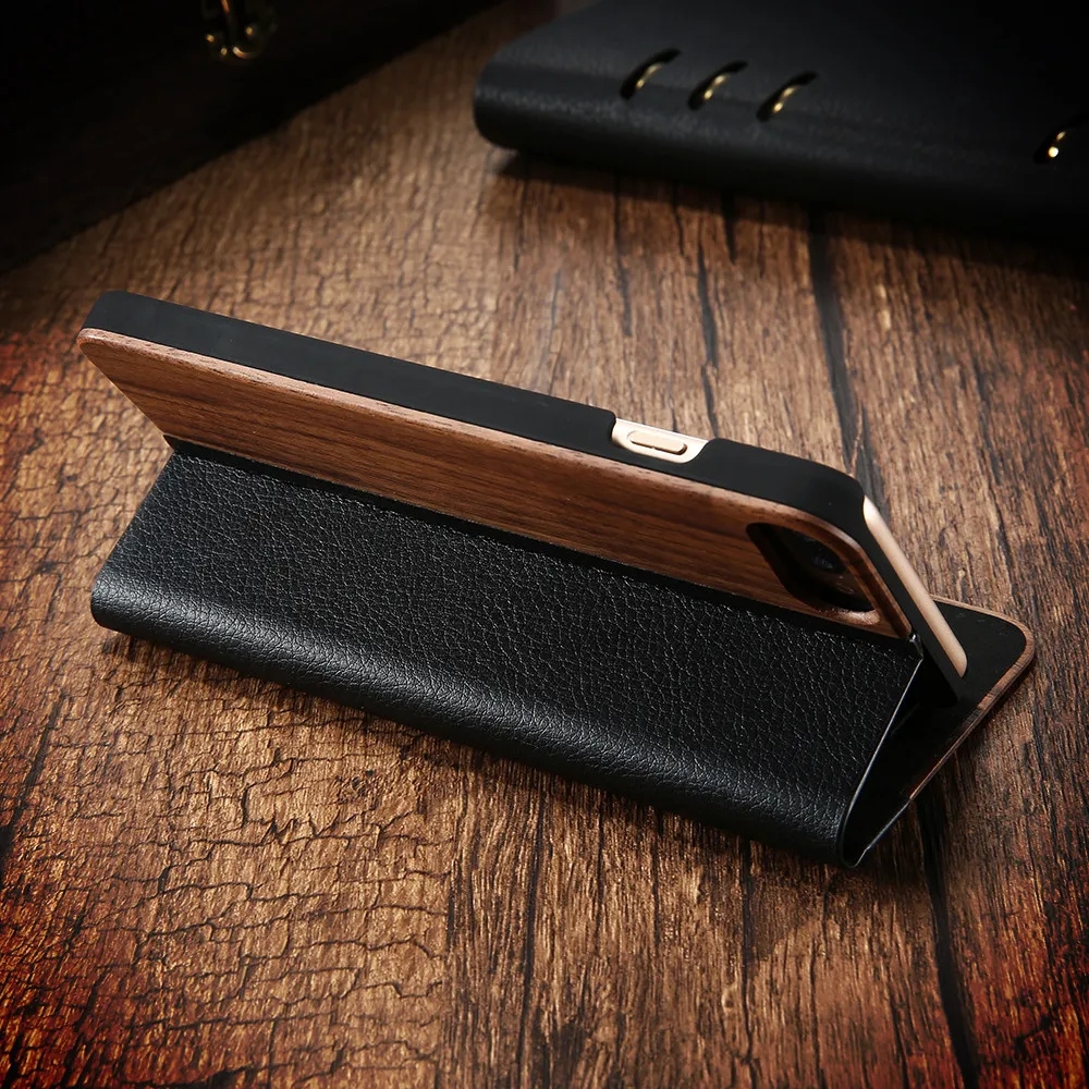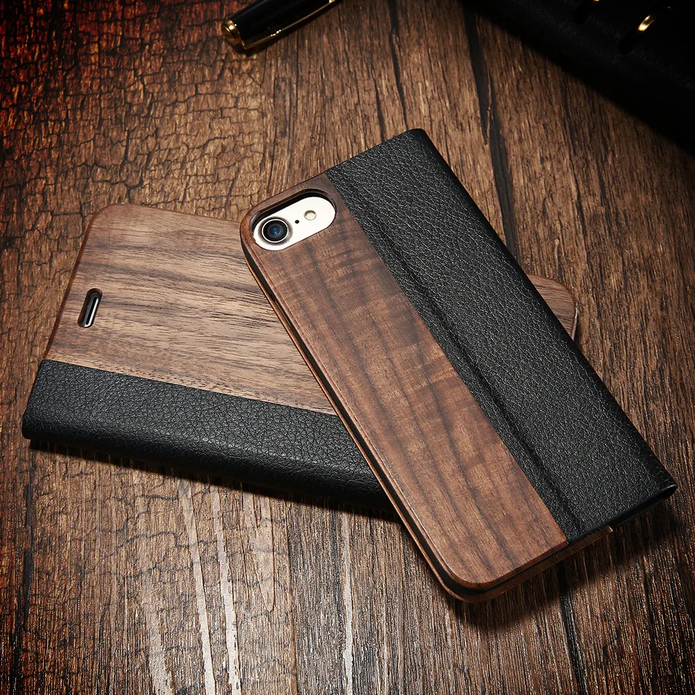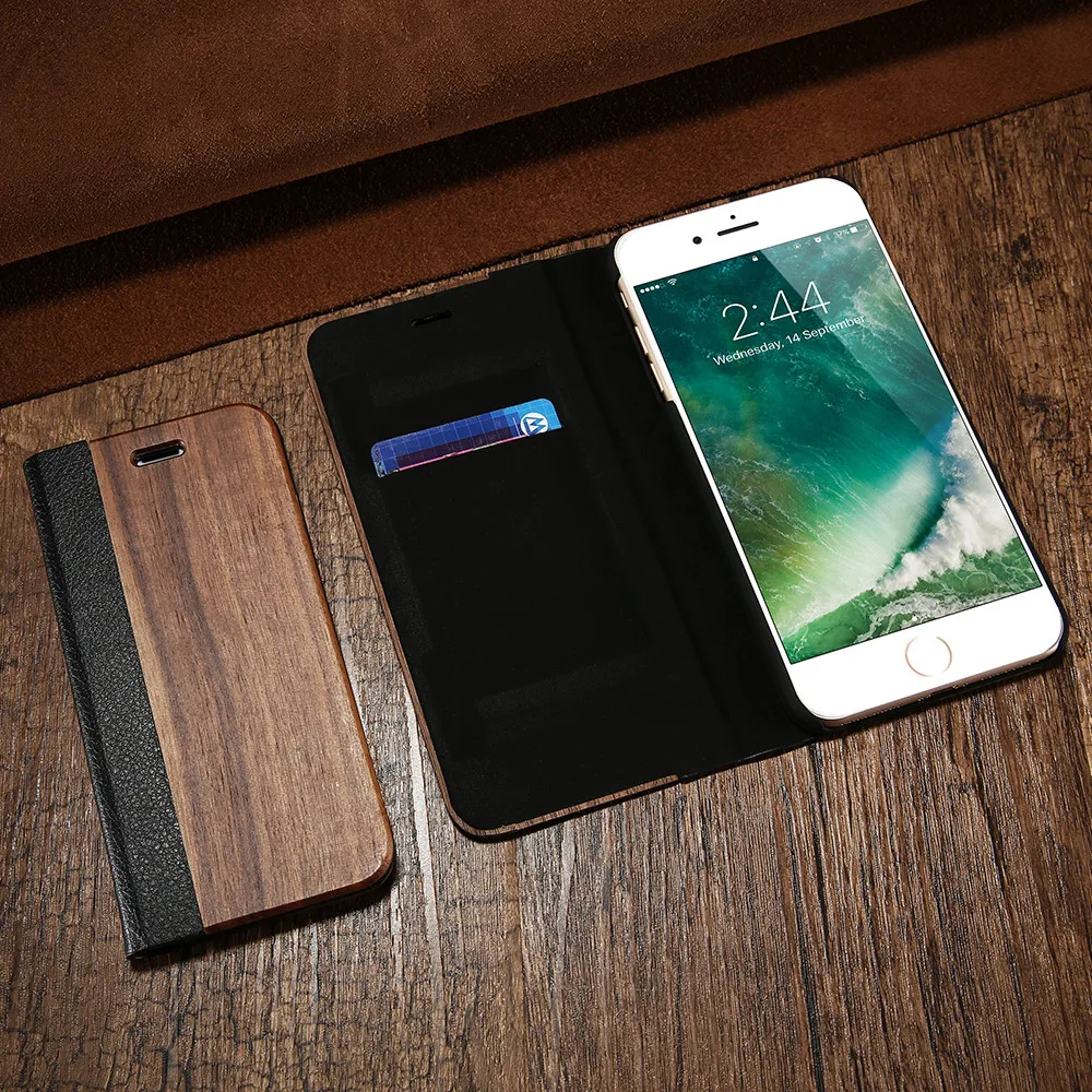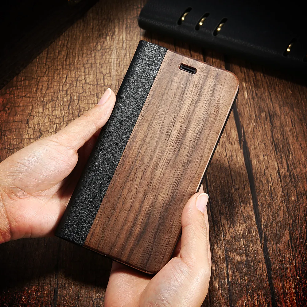 Type:Luxury Nature Wood Flip Leather Case Wallet Capa With Card Pocket