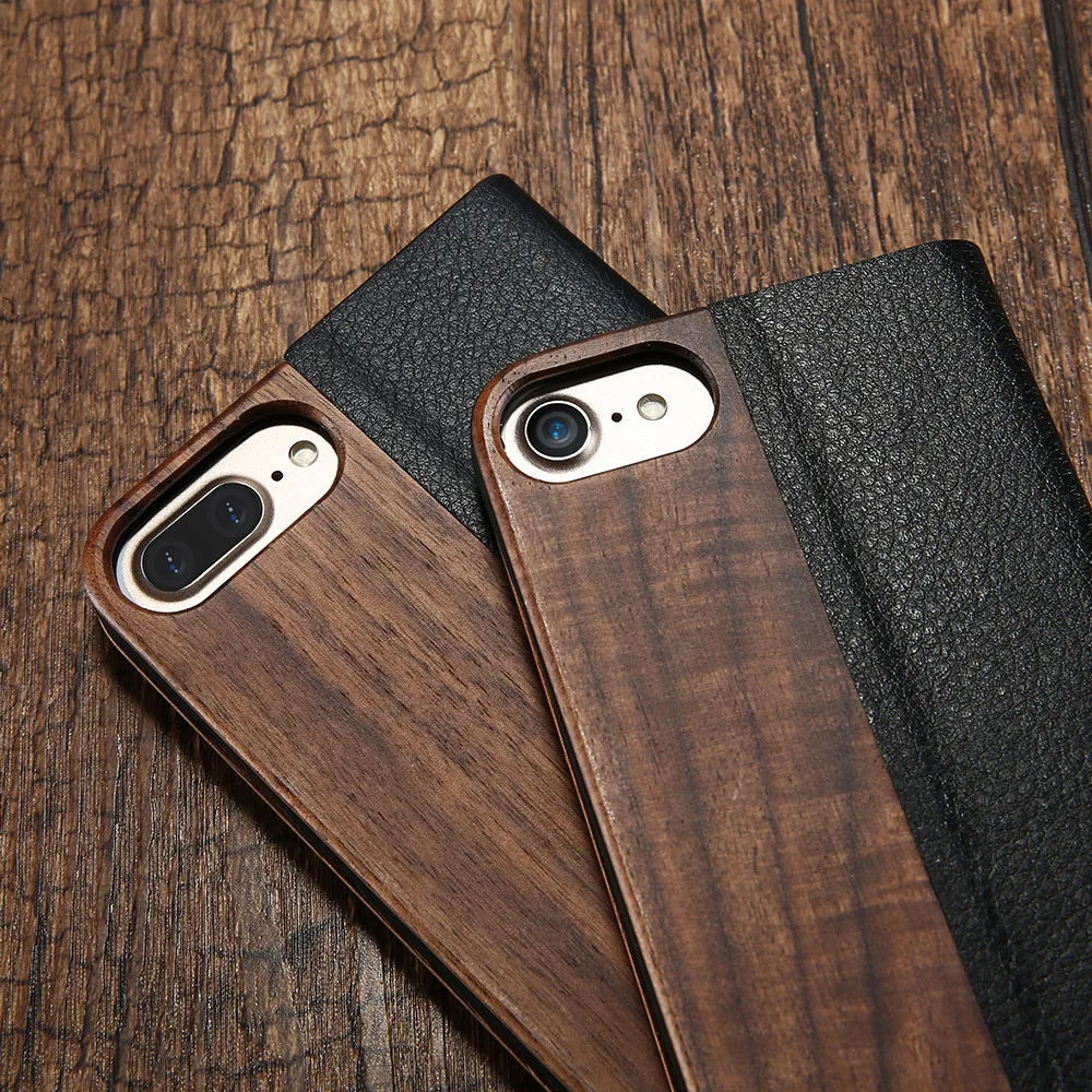 Features:Leather and Bamboo Wood Flip Card Slot Case Coque