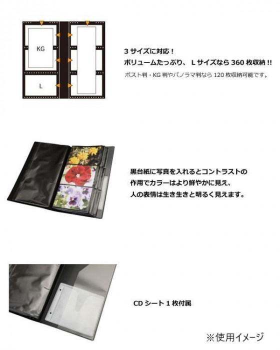 | 黒台紙で写真を鮮やかに見せる!!L判360枚収納のフォトアルバム。 |