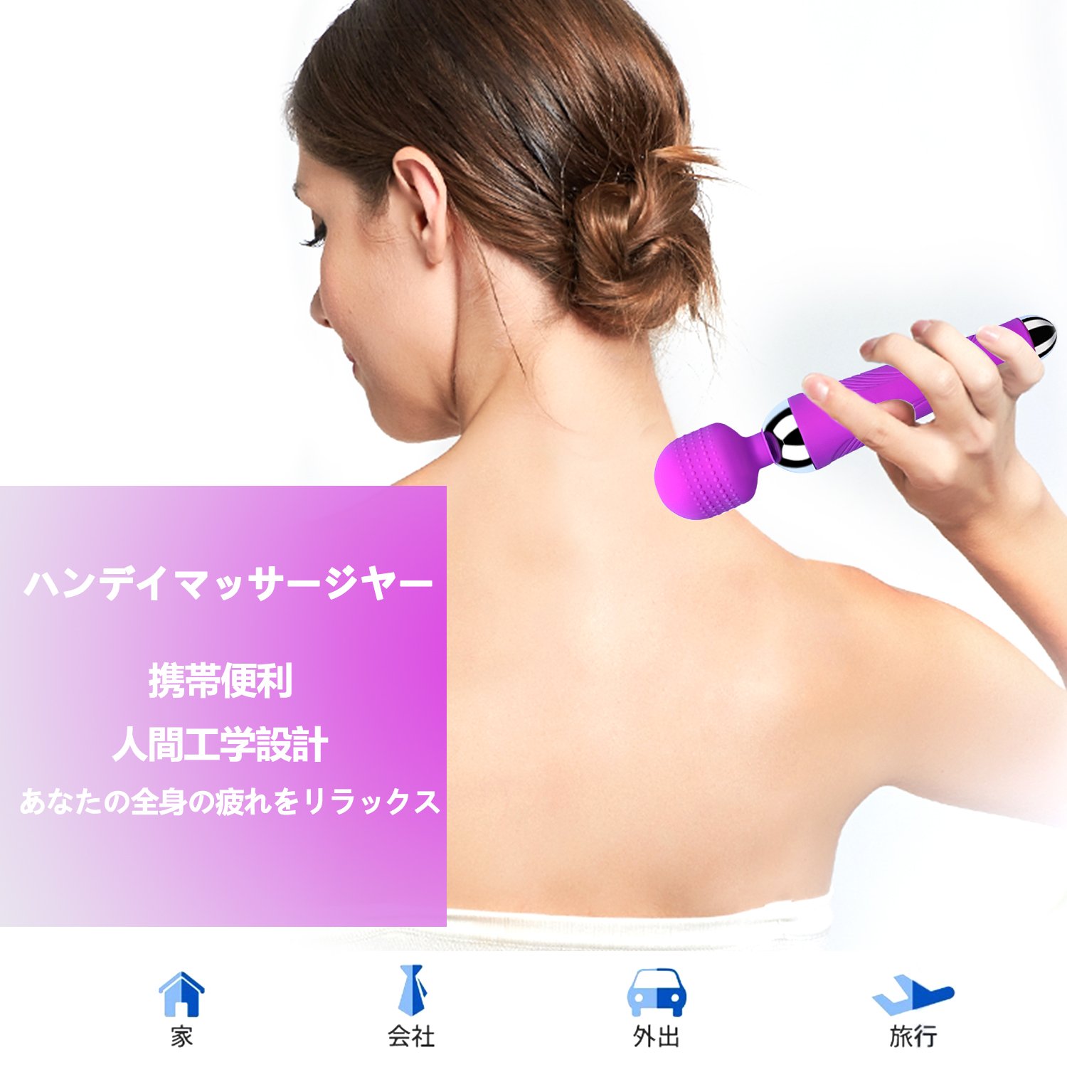 ♥【機能効果】体のコリに困っていませんか?本製品は、16段階の振動パターンお選びいただけますので、お客様にぴったりの振動で疲れをほぐしてくれます。ハンディマッサージャー360度自由に曲がる、体にゆっくりと優しくあてて筋肉のこりや疲れを解消し。 多彩な振動で1日の疲れを吹き飛ばしましょう。