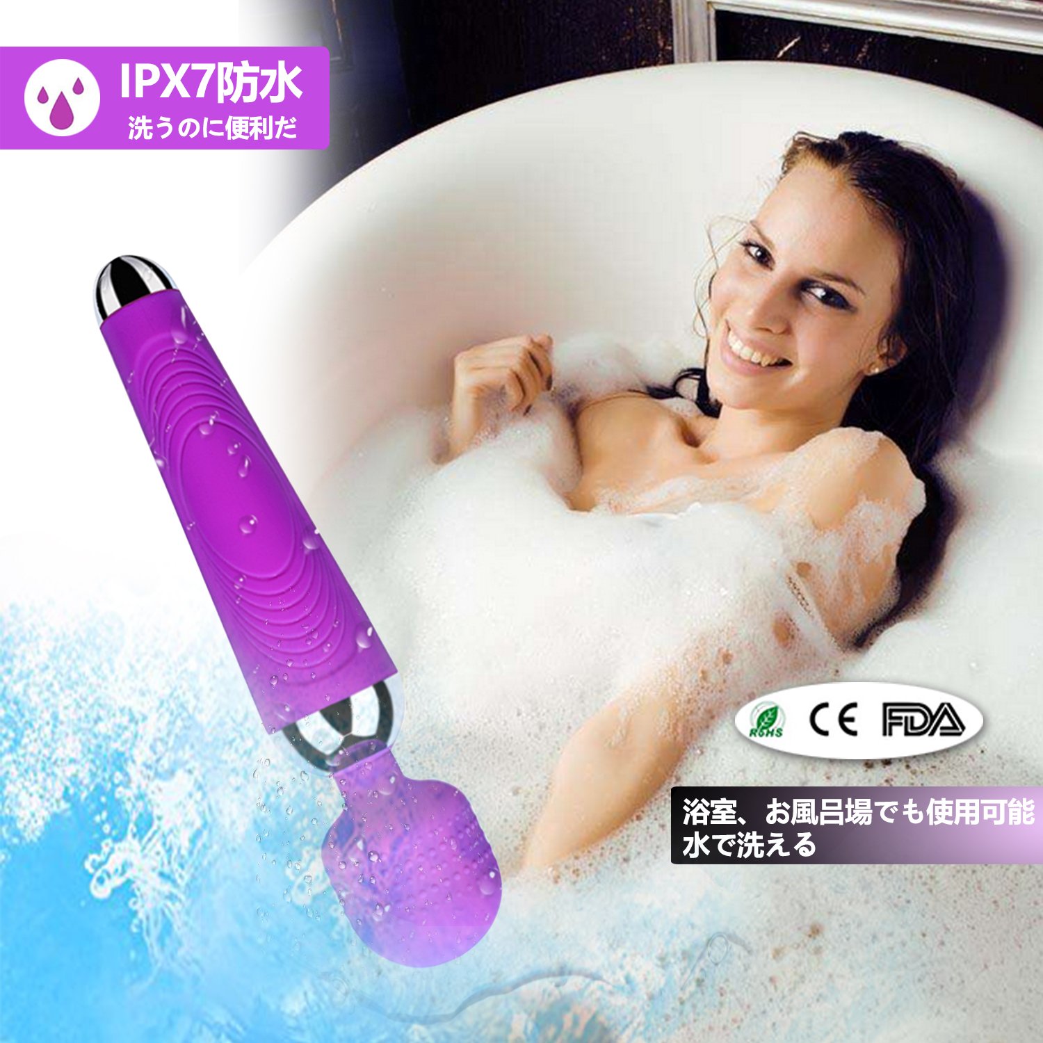 ♥【静音&防水】ノイズを最小限まで低減し、他人に迷惑をかけません。IP7規格の生活防水のデザイン、 シャワー、風呂場で使用できます。マッサージ機使用後直接水洗いができ、非常に便利です。また、いつも清潔に保つことができて、安心で楽しむことができます。