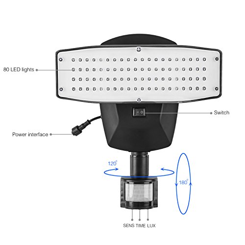 Complete illumination and security lighting for your garden, patio, garage, and pathway; lamp's 80 brilliant solar LEDs emit 380+ lumens