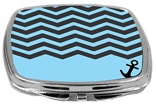 Rikki Knight Compact Mirror, 3D Chevron Black On Sky Blue with Anchor