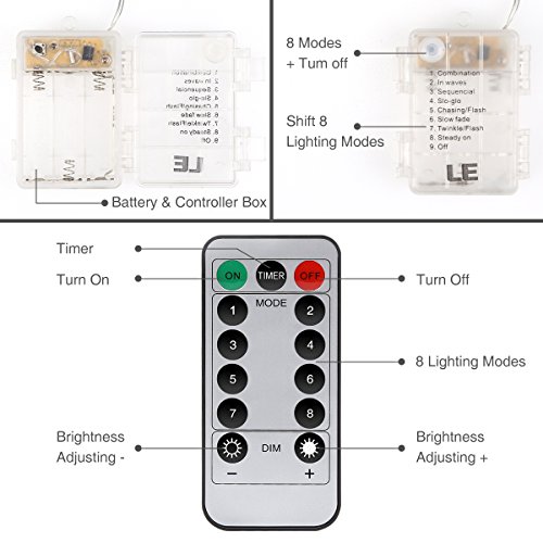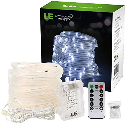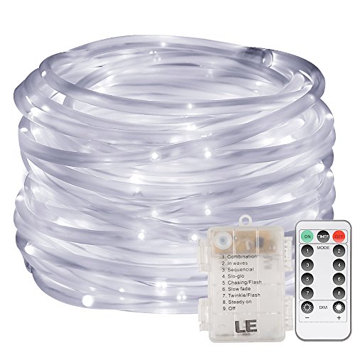 LE 33ft 120 LED Dimmable Rope Lights, Battery Powered, Waterproof, 8 Modes/Timer, Fairy Lights for Garden Patio Party Christmas Thanksgiving Outdoor Decoration (Daylight White)
