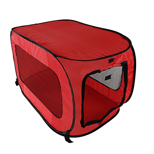 -. Binding : Misc. -. Brand : HowPlumb -. Feature : Interior size of crate is 29" x 19" x 19" for small to medium sized dogs / Exterior measures 32.5" x 19.5" x 19.5" when opened / Great for traveling with and transporting your pet and keeping them safe / Mesh window sides and a zippered mesh front / Comes with a carrying case and velcro flaps to keep it closed -. Label : HowPlumb -. Manufacturer : HowPlumb -. PackageQuantity : 1 -. ProductGroup : Pet Products -. ProductTypeName : PET_SUPPLIES -. Publisher : HowPlumb -. Studio : HowPlumb -. Title : Pet Kennel Crate Pop Open Soft Collapsible Indoor/Outdoor Portable Foldable Travel