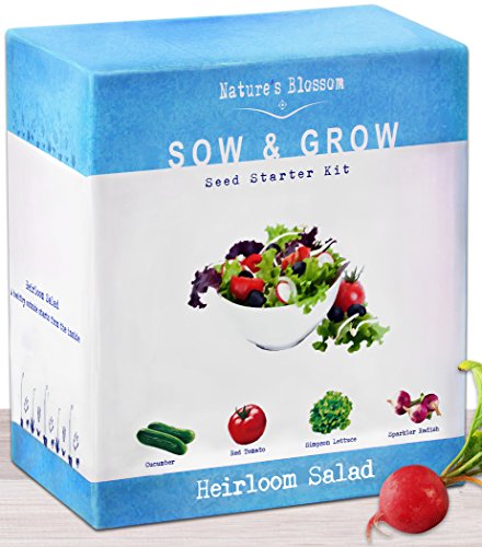 FUN & UNUSUAL GIFT - Nature's Blossom's heirloom salad kit is a great diy gift choice for beginners or experts, men, women and children. Popular gift for christmas, holidays, birthdays, housewarmings, graduation and more.
