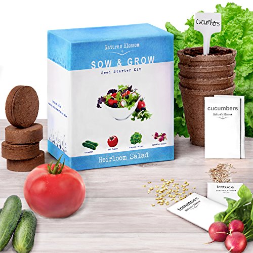 Heirloom Salad Seed Starter Kit - Grow 4 Organic Vegetables from Seeds. Set Contains Growing Pots, Soil, Plant Labels & Guide. Fun Garden Gift for Men & Women By Nature's Blossom
