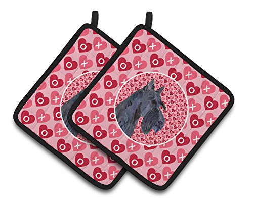 Caroline's Treasures Scottish Terrier Hearts Love Valentine's Day Portrait Pair of Pot Holders SS4529PTHD, 7.5HX7.5W, Multicolor