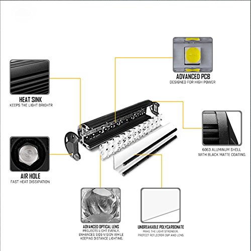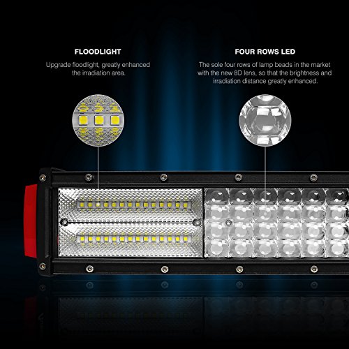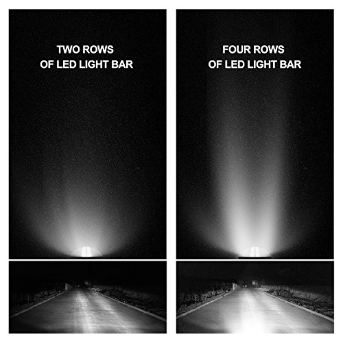 - Quad Row Light Bar Design: The unique 4 rows of high density LED chips and 8D lens make sure the light will be much bright than other 3 row/2 row/ 1 row Led light bar in the same length. Flood Spot Combo: The perfect combination of spot light 30 ̊ and flood light 150 ̊ can prolong irradiation distance and broaden the view area, which can completely turn the night into day!