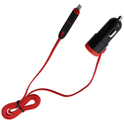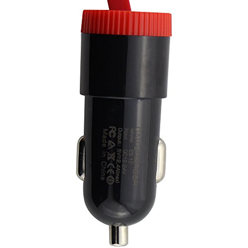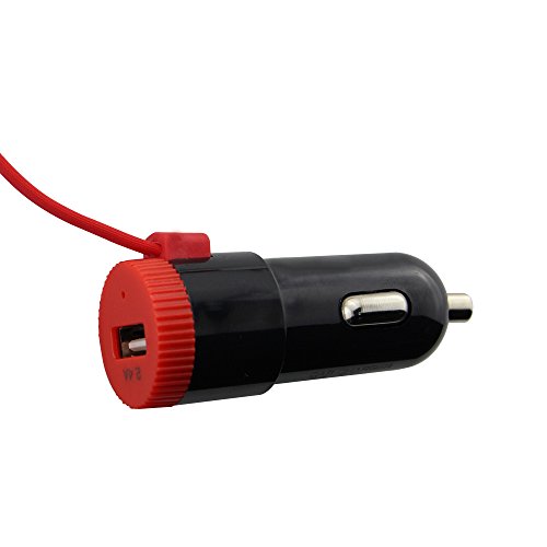 Collen Car Charger, compact car charger integrated 3ft 2 in 1 USB cable with a 2.4A output USB port (black)