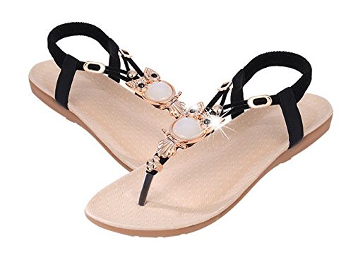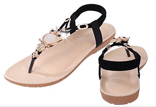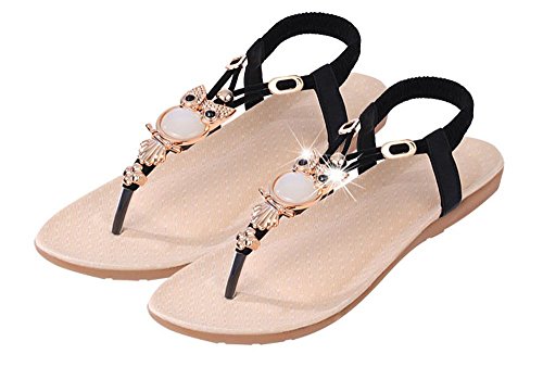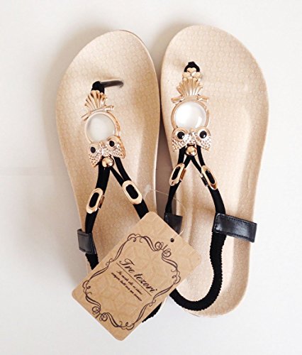 -. Title : (トレテゾーリ) tre tesori レディース サンダル 歩きやすい ぺたんこ ビジュー ボヘミアン ローヒール きれいめ ブラック ベージュ