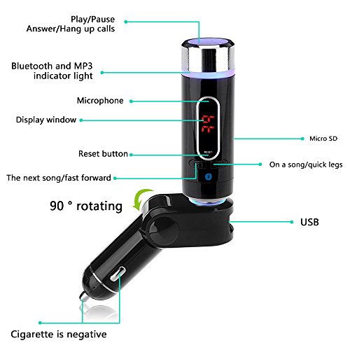 Liang's FM Transmitter, Wireless Bluetooth FM Transmitter Radio Adapter In-Car Vehicle FM Modulator With Cigarette Lighter Supports USB Charger ,Micro SD Card,FM Transmitter ,Music Playing ,Hands-Free Calling Compatible With Apple, Samsung, HTC, LG, Sony & More Smartphones, Tablets, MP3 Players