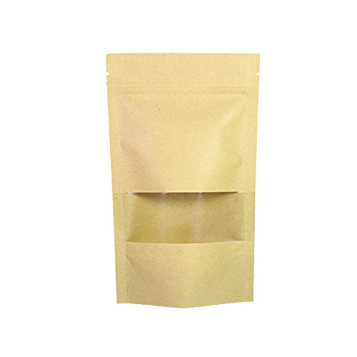 GooGou Resealable Kraft Paper Stand up Zipper Pouch Bags with Transparent Window Food Storage Bags Smell Proof Pouches 50pcs (5.5x7.8in)