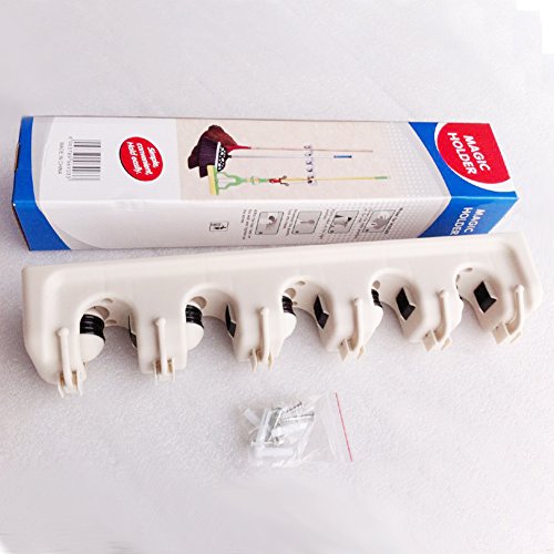 EUTUKEY Strongest Grippers Mop Broom Holders with 5 Ball Slots and 6 Hooks [Grey]