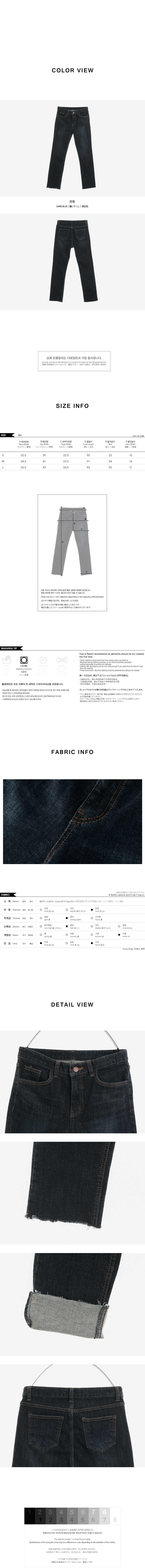 MD COMMENT 일자핏으로 세련된 라인을 연출해 줄 컷팅 팬츠를 소개할게요.다크한 진청 컬러로 FW시즌 다양한 상의와 분위기있는 스타일링을 도와드리는 아이템인데요. 전체 기모 안감으로 한 겨울에도 따뜻하게 착용 가능하구요.허리부터 무릎까지 타이트하게 핏되며 그 밑으로 일자로 툭 떨어지는일자 핏감으로 세련된 라인을 연출해줘요.쫀쫀한 신축성으로 편안한 착용감은 물론-라인을 슬림하게 잡아주어 날씬한 실루엣을 연출해주구요.곳곳에 데미지 디테일을 주어 빈티지한 매력을 더해주었어요.밑단에 내추럴한 컷팅으로 캐주얼한 무드도 한껏 느껴볼 수 있구요.양 사이드와 힙 라인에 포켓으로 실용성을 갖춰주었으며오픈클로징은 프론트 지퍼와 단추로 손쉽게 도와드려요.은은한 워싱으로 다양한 아이템과 두루두루 매치하기 좋아올 겨울 자주 손이 가게 될 팬츠 아이템으로 추천해요!COLOR/SIZE 진청S,M,LMODEL FITTING 진청/M